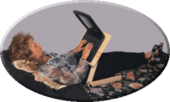 favorite chair. Jason O'Grady @ O'Grady's PowerPage / Go2Mac -----I truly love using the LAPTOP LAIDBACK and I would highly recommend it for any portable computer users. Laptop Buyers Guide & Handbook ( Jan 2000 ) ----- LAPTOP LAIDBACK from Laidback We -R- Inc. is a table that can keep your laptop sturdy while you're typing away in bed. |
